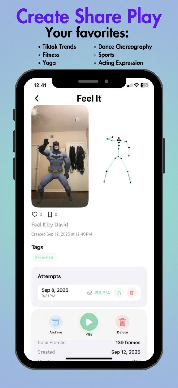 This is the big one. A production iOS app that's actually live in the App Store. Real-time AR pose detection, frame-accurate movement matching, multi-stream video capture, and a full social platform—all built in SwiftUI. It's not a prototype. It's not an MVP. It's a shipping product that real people use every day. And yes, you can download it right now.